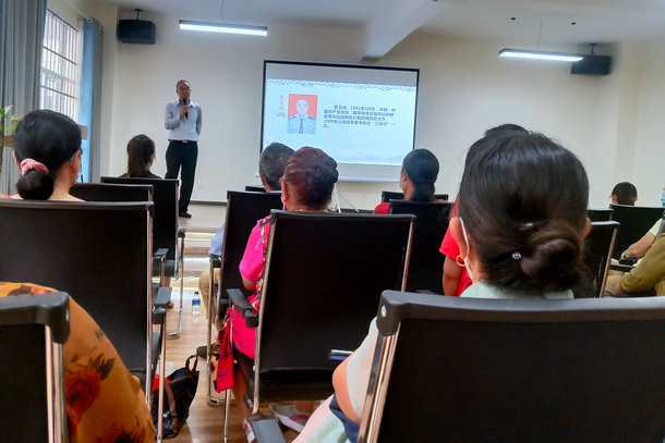活動(dòng)在《常回家看看》歌聲中拉開了序幕。大家一起聆聽了開遠(yuǎn)市第五屆道德模范普玉成長(zhǎng)年如一日照顧癱瘓母親孝行事跡,懂得了什么是“百善孝為先”,感受到道德的力量、榜樣的力量,接受了一次道德洗禮。齊聲誦讀《孟子·梁惠王上》中的經(jīng)典名句,從經(jīng)典詩(shī)文中,進(jìn)一步感悟孝老愛親的意義。大家還就如何有效解決盡職履責(zé)與盡孝之間的矛盾,做到“忠孝兩全”進(jìn)行了心得交流,活動(dòng)最后,將鮮花送到道德模范普玉成手中,向道德模范表達(dá)由衷敬意。