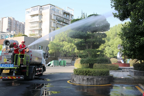 “水管已接好,可以放水了。”“前面的人把槍管扶好,水來了!”“沒想到消防水管這么重,還好我們?nèi)硕嗔α看蟆?rdquo;……噴射的水柱,在陽(yáng)光的照射下猶如一道道彩虹,為久旱的花草樹木帶去生機(jī)和力量。志愿者們分成三組,一組拉著長(zhǎng)長(zhǎng)的消防水管,其他兩組分別操控灑水車、霧炮車的噴水槍,同時(shí)戰(zhàn)斗,分區(qū)澆灌,按照“細(xì)澆慢灌、澆足澆透”的原則,頂著烈日,熱火朝天地對(duì)綠化帶、草坪以及樹木等進(jìn)行灌溉,顧不上濕透的全身和因長(zhǎng)時(shí)間托舉水管水槍而早已酸痛的胳膊,只為守護(hù)溫馨、優(yōu)美的生活環(huán)境。經(jīng)過奮戰(zhàn),看著濕潤(rùn)的草地和舒展生機(jī)的植被,大家浸透著汗水的臉上露出了欣慰的笑容。