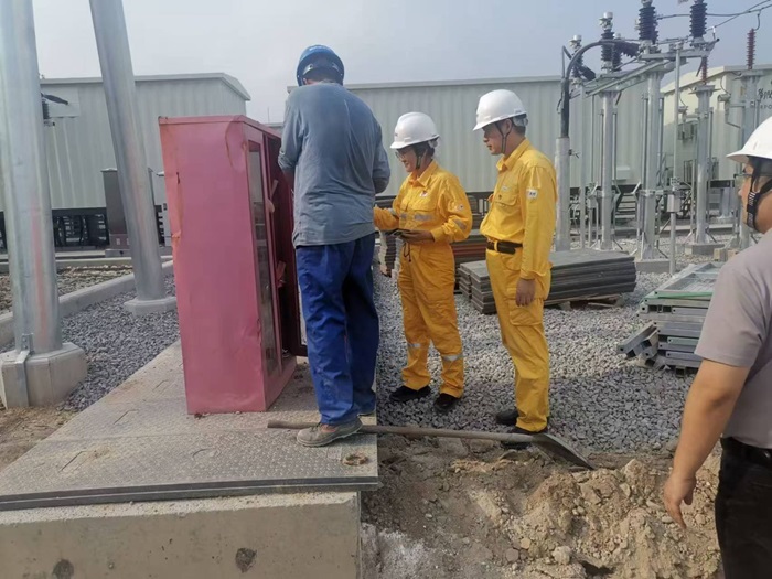 在本次送清涼活動(dòng)中,黨支部成員結(jié)合生產(chǎn)工作,也準(zhǔn)備了針對建設(shè)項(xiàng)目的法律法規(guī)等課件,對清江浦建設(shè)項(xiàng)目所有參建單位的管理人員共 16 人,開展了光伏建設(shè)項(xiàng)目相關(guān)知識的培訓(xùn)及測試。培訓(xùn)結(jié)束后,并對施工現(xiàn)場進(jìn)行了相關(guān)安全檢查,重點(diǎn)檢查了升壓站區(qū)域施工現(xiàn)場的安全防護(hù)措施、個(gè)人防護(hù)裝備以及施工現(xiàn)場的安全管理狀況,確保每一項(xiàng)安全規(guī)定都能被嚴(yán)格遵守。同時(shí),還對工程進(jìn)度予以了評估,給出了具有建設(shè)性的意見和建議。
