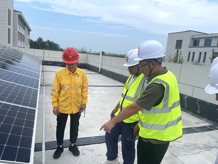 在與施工人員的交流中,檢查小組詳細詢問了他們的工作強度和作息時間安排,叮囑大家要合理安排工作,避開高溫時段,防止中暑。同時,提醒大家要注意飲食衛(wèi)生和個人休息,保持良好的身體狀態(tài)。送清涼及對學校屋頂光伏施工現(xiàn)場檢查后,對建設項目現(xiàn)場的所有管理人員進行了有針對性地培訓及測試。