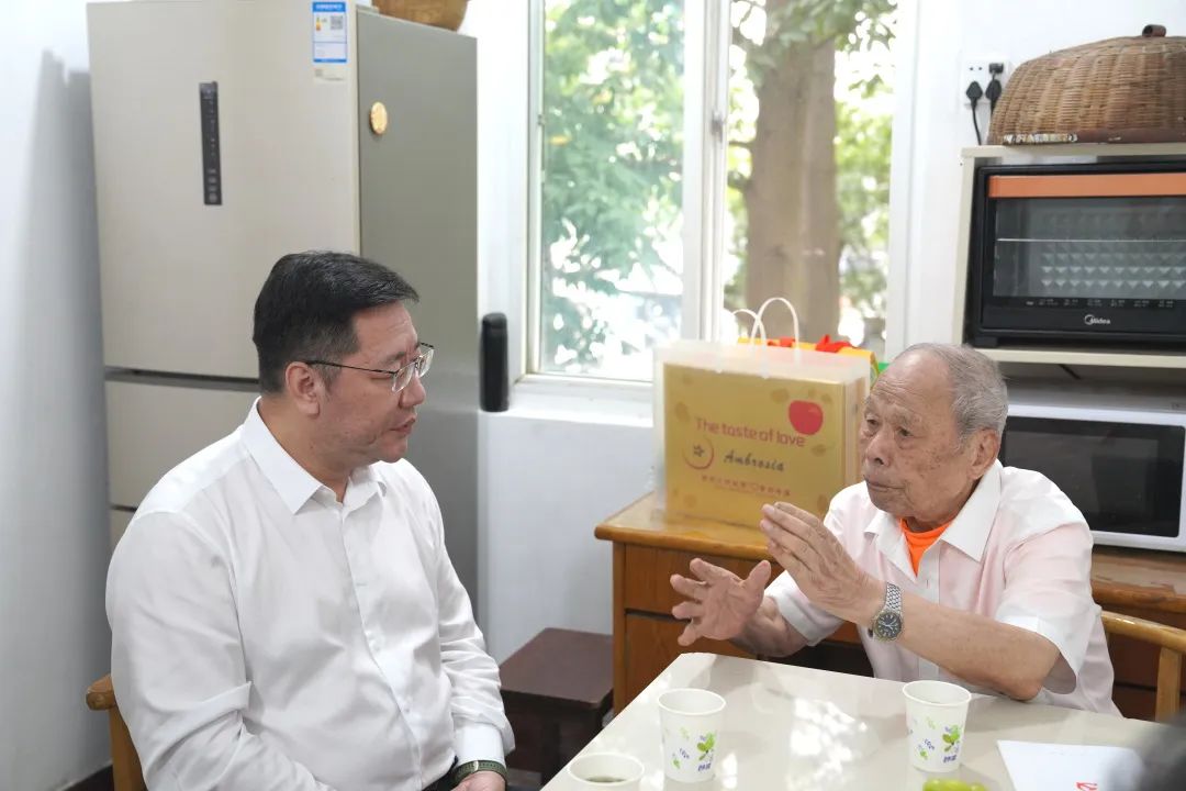 慰問中,公司領導分別與兩位百歲老人促膝交談,通過拉家常、聊健康、談發(fā)展的方式,宣傳貫徹黨的創(chuàng)新理論成果,認真傾聽孟良崮戰(zhàn)役等真實經(jīng)歷中的戰(zhàn)略布局、系統(tǒng)謀劃,以及他們的身體狀況、生活狀況和關心關切的急難愁盼問題,把關懷和溫暖送到老黨員身邊。同時對他們?yōu)辄h組織和華電浙江事業(yè)的辛勤付出、所作貢獻表示衷心感謝,祝愿他們家庭美滿、身體健康、生活愉快。