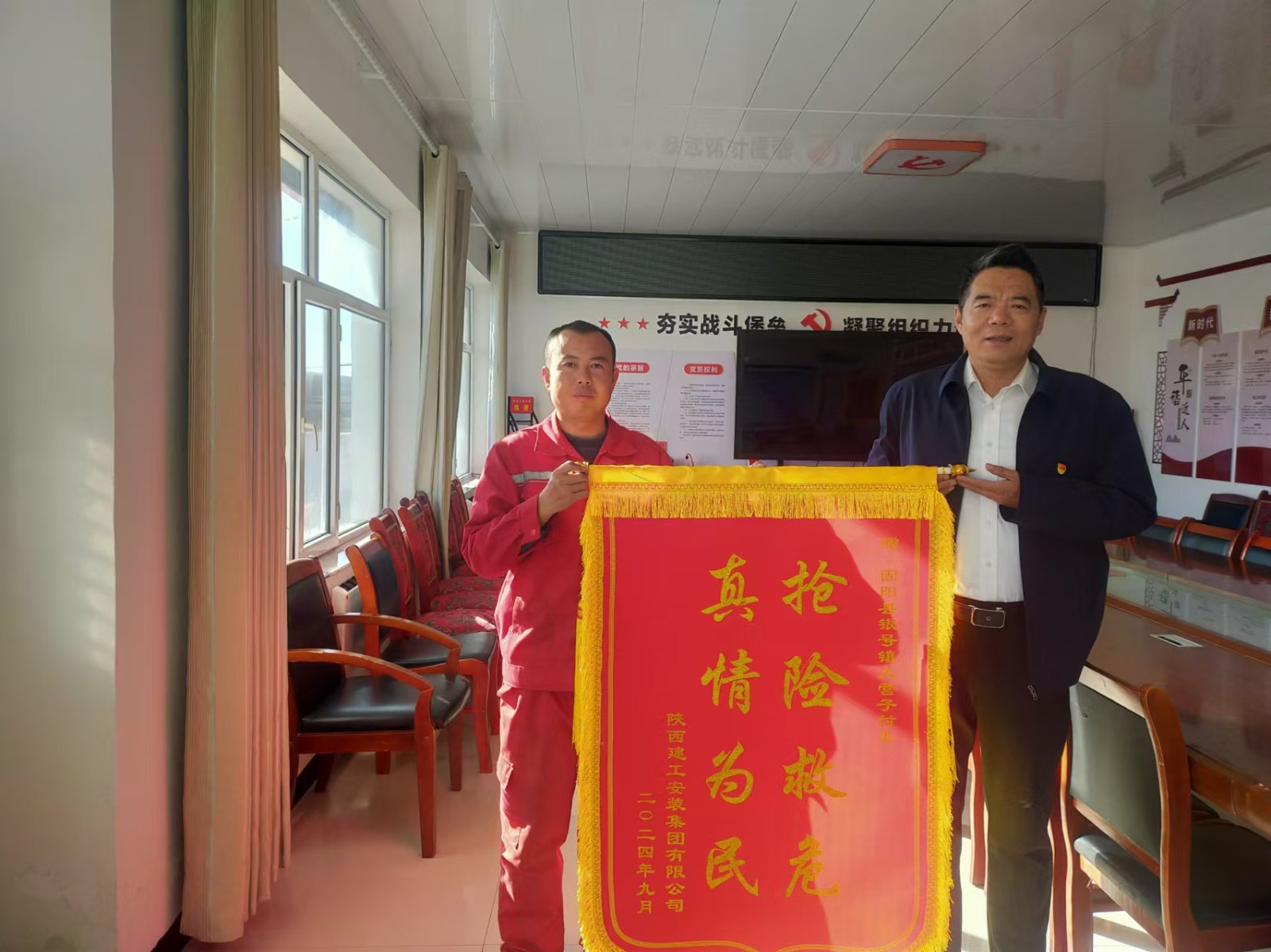 圖為陜西建工安裝集團(tuán)負(fù)責(zé)人到大營(yíng)子村送錦旗