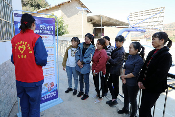 活動(dòng)當(dāng)天,該公司志愿者們通過(guò)拉家常、送祝福等形式,與村民親切交談,了解村情,了解他們的日常生活情況,為他們送上節(jié)日的祝福,送去米、油、棋類等生活用品和文體用具。向村民宣傳防范電信網(wǎng)絡(luò)詐騙知識(shí),守好群眾“錢袋子”。并為村中評(píng)選出的“好丈夫、好妻子、好鄰里、好兒媳、好婆婆”等5名先進(jìn)典型頒發(fā)了榮譽(yù)證書及獎(jiǎng)品,動(dòng)員全村群眾學(xué)習(xí)先進(jìn)典型,弘揚(yáng)中華民族傳統(tǒng)美德,營(yíng)造積極向上的家庭環(huán)境,充分發(fā)揮文明家庭典型示范的重要作用。最后,隨著音樂(lè)響起,大家一起跳起了傳統(tǒng)的煙盒舞,現(xiàn)場(chǎng)充滿一片歡聲笑語(yǔ),進(jìn)一步增強(qiáng)文化自信,為推動(dòng)鄉(xiāng)村文化振興“添動(dòng)力”。