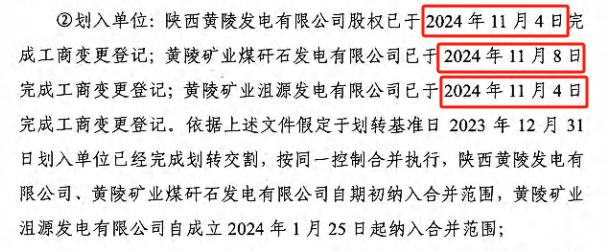 此外,陜煤集團將自身持有的黃陵礦業(yè)煤矸石發(fā)電有限公司52.94%股權(quán),黃陵礦業(yè)集團有限責(zé)任公司持有的黃陵礦業(yè)煤矸石發(fā)電有限公司47.06%、陜西黃陵發(fā)電有限公司60%、黃陵礦業(yè)沮源發(fā)電有限公司100%的股權(quán)無償劃轉(zhuǎn)至陜煤電力集團。
