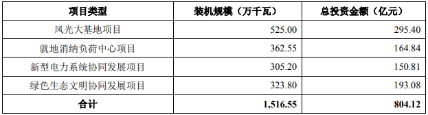 其中,風(fēng)力發(fā)電、 太陽(yáng)能發(fā)電項(xiàng)目建設(shè)擬使用募集資金約 210 億元,補(bǔ)充流動(dòng)資金擬使用募集資金約 90 億元,公司風(fēng)力發(fā)電、太陽(yáng)能發(fā)電項(xiàng)目建設(shè)具體分布情況如下:
