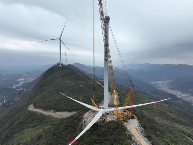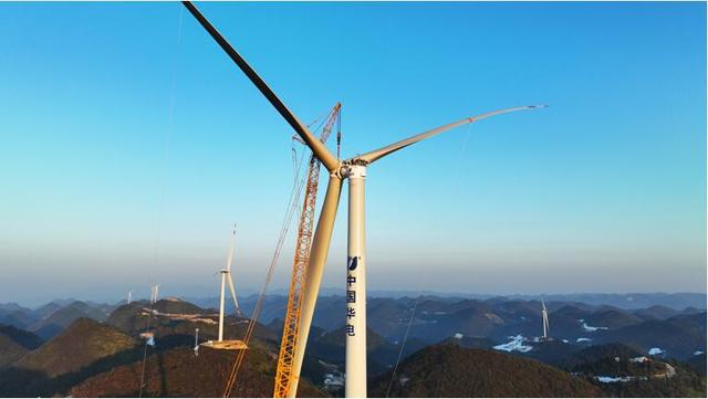 華電奉節(jié)龍家坪項目風(fēng)機葉片吊裝 華電重慶公司供圖