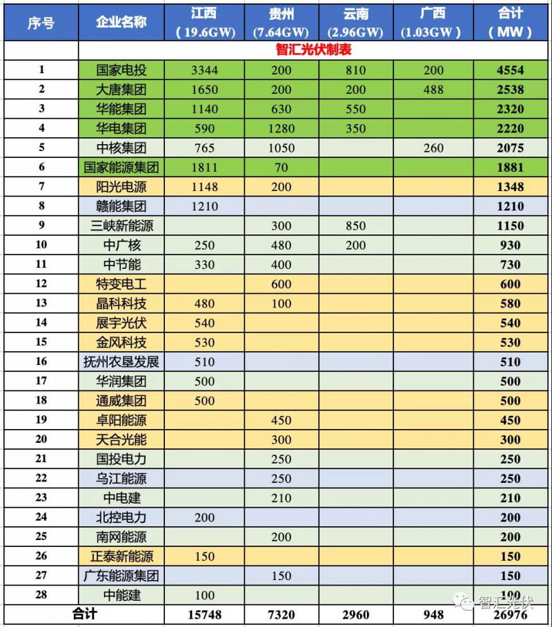 在近期江西、貴州、云南、廣西四省公布的2021年光伏項目名單中,華電集團總規(guī)模達到2.22GW!