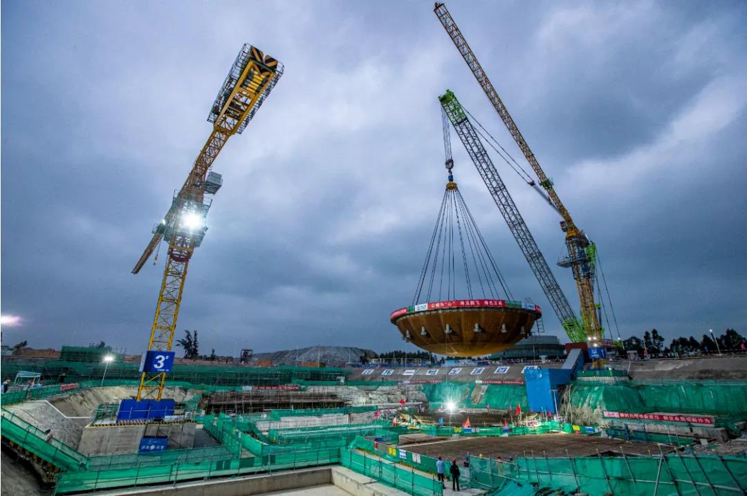 本次吊裝的鋼制安全殼底封頭為橢球形,由于鋼制安全殼底封頭體量大,為了便于加工和運輸,將鋼制安全殼底封頭分成50個瓣片,在現(xiàn)場拼裝完成后整體進行吊裝。中核集團海南核電牽頭中核工程、中核二二等參建單位成立玲龍首堆CV(鋼制安全殼)安裝黨員突擊隊,快速協(xié)調(diào)解決現(xiàn)場制約因素和問題,克服“獅子山”和“圓規(guī)”雙臺風(fēng)影響,確?,F(xiàn)場各項準備工作有序開展,并通過了生態(tài)環(huán)境部華南核與輻射安全監(jiān)督站的現(xiàn)場檢查。