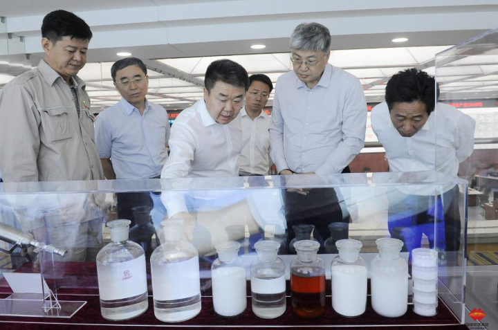劉國躍在寧夏煤業(yè)煤制油分公司查看煤制油產(chǎn)品