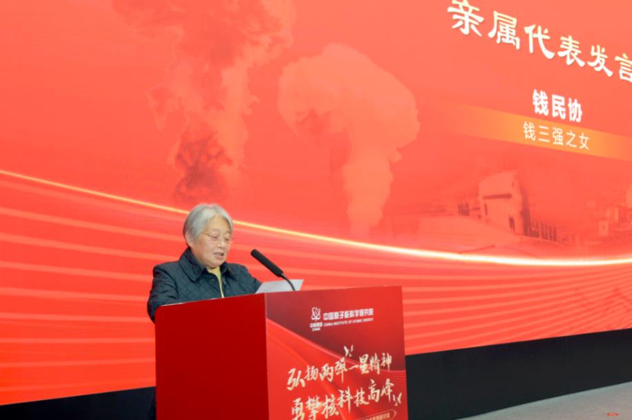 中核集團(tuán)總經(jīng)理、黨組副書記顧軍,國防科工局系統(tǒng)工程二司副司長于曉麗,兩院院士錢紹鈞、杜祥琬、詹文龍、周永茂、張煥喬、孫昌璞、王貽芳、羅琦、高原寧,錢三強(qiáng)秘書、《錢三強(qiáng)傳》作者、中國工程院首任秘書長葛能全,原總裝備部政治部創(chuàng)作員、《國士錢三強(qiáng)》作者彭繼超,錢三強(qiáng)女兒、北京大學(xué)化學(xué)學(xué)院教授錢民協(xié),錢三強(qiáng)兒子、北京大學(xué)物理學(xué)院教授錢思進(jìn),以及原子能院領(lǐng)導(dǎo)班子出席大會。兩院院士李德平、錢皋韻、王方定、胡仁宇、王乃彥、樊明武為活動錄制寄語并題詞。
