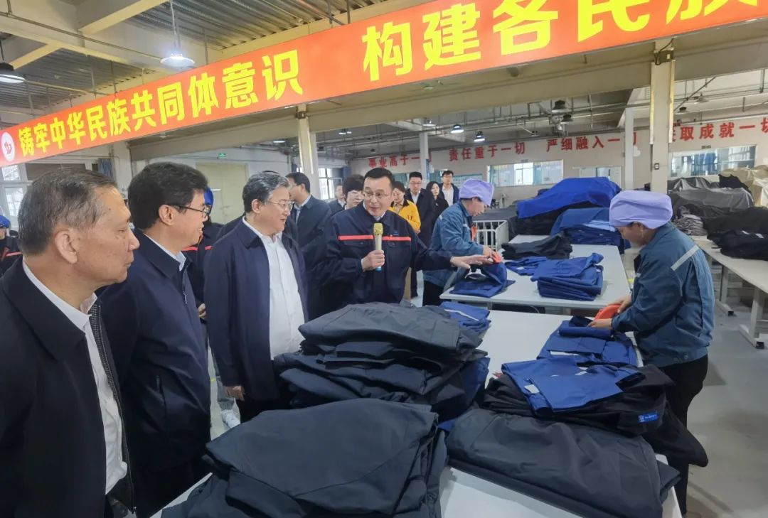 在寧夏同心(中核)清潔能源產(chǎn)業(yè)園,余劍鋒先后參觀了英利能源光伏組件全自動(dòng)智慧化生產(chǎn)線、同心防護(hù)科技公司服裝生產(chǎn)車(chē)間,詳細(xì)了解了工藝流程、設(shè)施設(shè)備、企業(yè)黨建和生產(chǎn)經(jīng)營(yíng)等情況,并聽(tīng)取了中核匯能引進(jìn)中核熱鹽、上能電氣等產(chǎn)業(yè)落地情況,充分肯定了中核集團(tuán)“六新一體”新能源產(chǎn)業(yè)幫扶格局對(duì)同心縣清潔能源產(chǎn)業(yè)鏈建設(shè)的引領(lǐng)作用。同時(shí),他還鼓勵(lì)當(dāng)?shù)芈毠ひ獔?jiān)定發(fā)展信心,“幸福是奮斗出來(lái)的!”