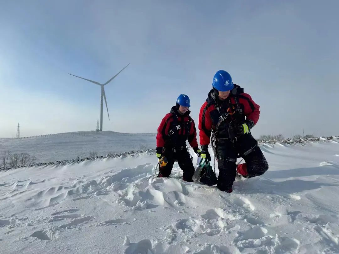 在最高氣溫只有零下26攝氏度河北張家口沽源縣,華電冀北新能源馳盛風(fēng)電場(chǎng)的運(yùn)維員工,正冒著寒風(fēng)對(duì)輸配電線路進(jìn)行特巡,及時(shí)啟動(dòng)極寒天氣應(yīng)急預(yù)案,通過(guò)“可視化+無(wú)人機(jī)+人工巡檢”的方式,開(kāi)展線路及站內(nèi)設(shè)備特巡,加強(qiáng)設(shè)備監(jiān)控和消缺。
