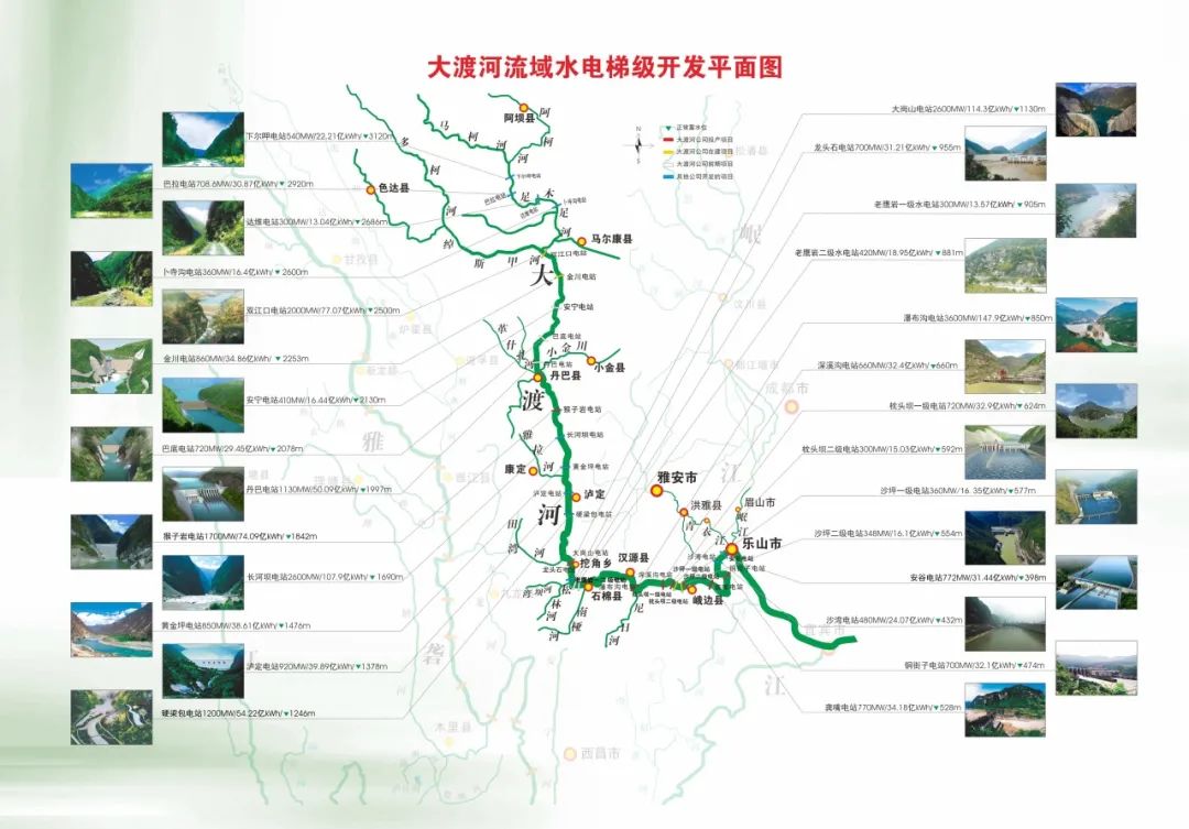 大渡河流域是國家能源集團水電開發(fā)主要區(qū)域,在干流投產(chǎn)裝機1133.8萬千瓦,投產(chǎn)水電總裝機占四川省水電統(tǒng)調(diào)裝機的四分之一,在建水電裝機352萬千瓦,是清潔能源開發(fā)重要基地。