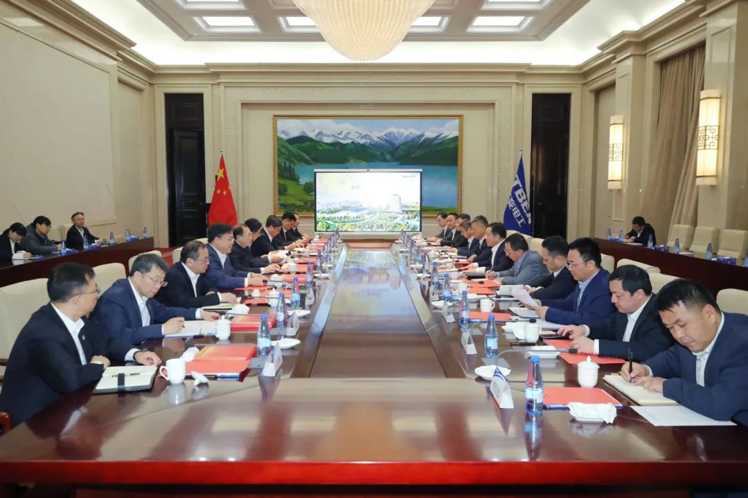 調(diào)研期間,江毅與特變電工黨委書記、董事長(zhǎng)張新舉行會(huì)談,并參觀特變電工輸變電科技產(chǎn)業(yè)園1100千伏展廳、車間及750千伏車間。