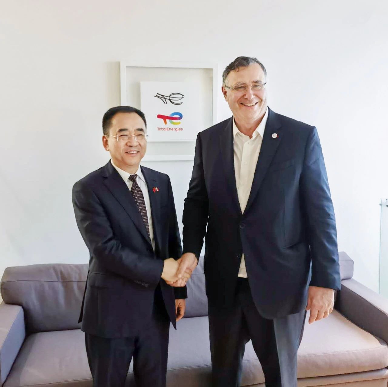 當日下午,鄒磊在巴黎與道達爾能源集團董事長兼首席執(zhí)行官潘彥磊就加強合作進行了友好交流。