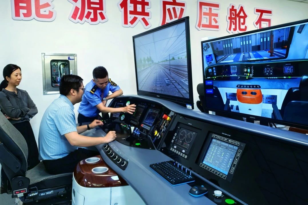 朔黃鐵路員工在介紹列車模擬駕駛操作平臺