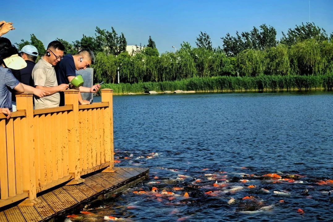 黃驊港用壓艙水打造的蓮園湖內(nèi)錦鯉成群