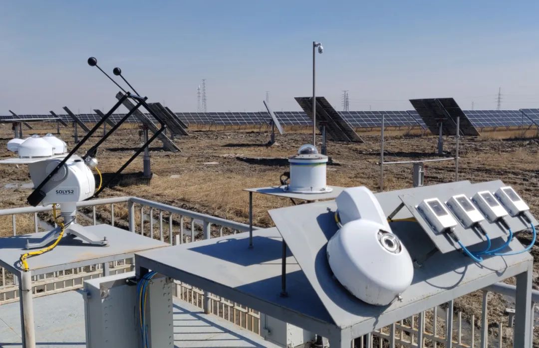參照IEC61724標準在場站不同方位布置氣象站,開展基地輻照、溫度、光譜紫外、風速風向等氣象數(shù)據(jù)監(jiān)測,為各對比區(qū)的實證實驗提供公共氣象數(shù)據(jù),為該區(qū)域光伏電站設計提供多年連續(xù)實測氣象數(shù)據(jù)。