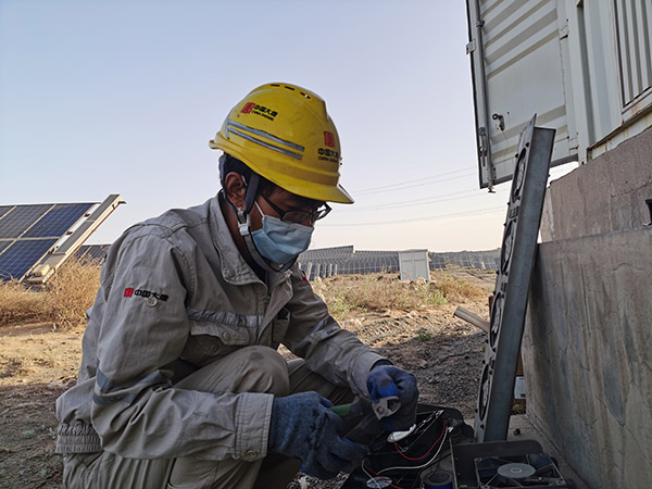 6月是光伏發(fā)電的高峰期,但環(huán)境溫度高、地域風(fēng)沙大,導(dǎo)致現(xiàn)場逆變器室積塵嚴(yán)重,設(shè)備散熱效果不佳,部分散熱風(fēng)扇受當(dāng)?shù)仫L(fēng)沙影響,無法正常工作,逆變器室因溫升限負(fù)荷報(bào)警,一定程度上制約了光伏板正常發(fā)電。“難題”擺在眼前,卻難不倒這群大漠電站的年輕人,為不影響峰值輻照的發(fā)電量,他們搶在太陽升起前便開始動(dòng)身,備好備件、持好工具,快速趕到現(xiàn)場,一頓“快查、快拆、快換”靈活操作,2小時(shí)完成了40多個(gè)堵塞風(fēng)扇的更換工作。到太陽高照的時(shí)候,他們再次赴現(xiàn)地檢查和處理低效發(fā)電組串,解決處理限制發(fā)電量的突發(fā)異常。一次次地現(xiàn)場排查、問題處理促進(jìn)了發(fā)電量穩(wěn)步提升。