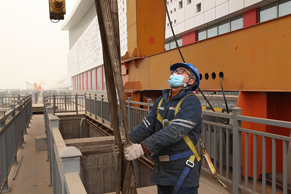為了戰(zhàn)勝惡劣的風(fēng)沙天氣,確保下游人民群眾的生命財產(chǎn)安全,保證黃河海勃灣水利樞紐大壩的安全穩(wěn)定、發(fā)電機組平穩(wěn)運行,該公司全體職工信念堅定、目標一致,展開了一場聲勢浩大的迎戰(zhàn)風(fēng)沙活動。在布滿沙塵的黃河岸邊,水工觀測專業(yè)人員絲毫沒有受到天氣的影響,本著實事求是、精準測量的原則,將測量線路、構(gòu)造物位置及高程精準的定位到水平面上,保障建筑測量數(shù)據(jù)可靠有力,為大壩安全穩(wěn)定提供有力支撐;在風(fēng)沙肆虐的壩上公路,生產(chǎn)一線職工頂著凌冽的大風(fēng),認真執(zhí)行機組開機前的各項準備工作,精準指揮起重門機運行,將一塊又一塊機組蓋板平穩(wěn)吊起又平穩(wěn)落下,為機組開機安全奠定基礎(chǔ)。一會功夫,他們的身上、臉上都掛上了一層細沙,他們用辛勤和苦干,清除了一個個隱患,打開了安全的大門。