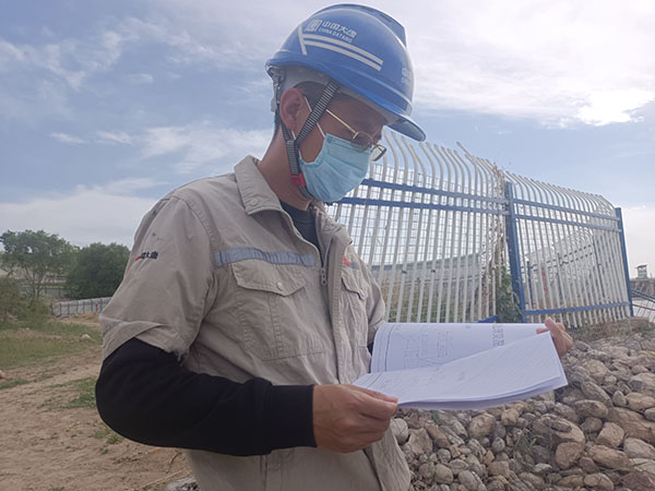 水工人員對照圖紙檢測壩體情況