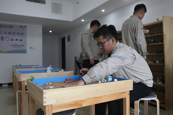 職工是企業(yè)之本,為促進(jìn)新職工之間的人際互動,普及心理健康知識水平,增強職工心理健康防護能力,激發(fā)職工工作的積極性、主動性,該公司工會組織開展了沙盤游戲活動。在工作人員介紹了沙盤游戲的相關(guān)知識和規(guī)則后,活動正式開始。通過非語言的溝通方式,新職工們構(gòu)造著自我的內(nèi)心世界,有的是回味校園時光的美好畫面;有的是構(gòu)想未來的自由悠閑生活畫面;還有的是回歸現(xiàn)實,踏實學(xué)習(xí)兢兢業(yè)業(yè)工作的畫面.......。短短的兩個小時,通過繪制沙盤,體會到了凝聚與溫暖的力量;通過分享傾訴,訴說出了內(nèi)心的真實感受;通過溝通討論,相互汲取智慧。沙盤游戲還教會了大家如何在平常生活中如何緩解自身心理壓力,培養(yǎng)良好的生活習(xí)慣,進(jìn)一步增強了團隊的凝聚力和向心力。