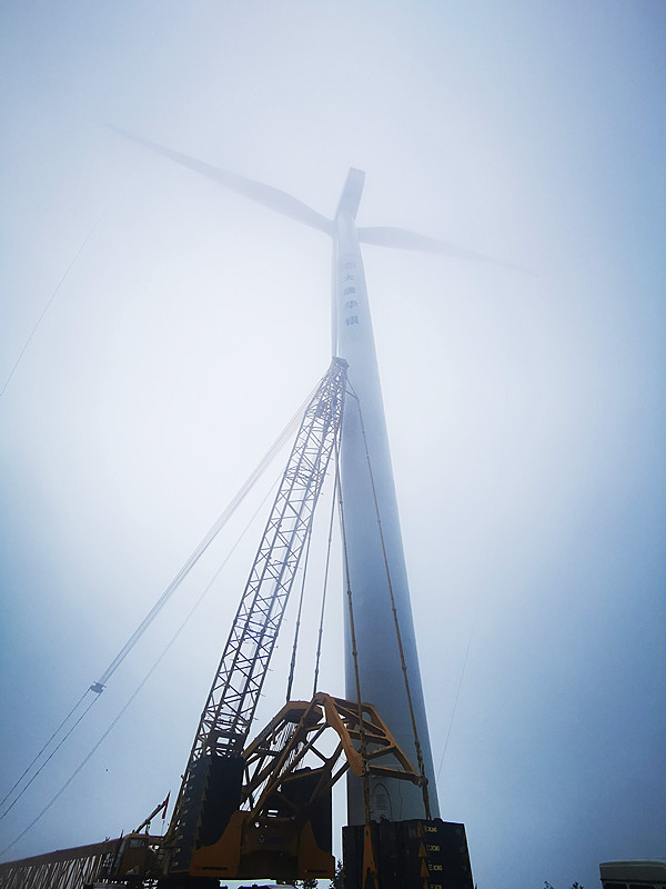 該項目自2021年8月2日全面開工建設(shè)以來,全員克服時間緊、任務(wù)重,以及夏季長時間高溫、近期溫度驟降、山上風(fēng)力較大等重重困難,縝密部署,團(tuán)結(jié)拼搏,以扎實的管理、良好的協(xié)調(diào)、有力的措施,特別是針對作業(yè)高峰期充分討論、采取舉措,在大件運輸、吊裝等工作中做到了有方案、有計劃、有落實。經(jīng)過節(jié)假無休、連續(xù)作戰(zhàn),先后完成了十臺風(fēng)機基礎(chǔ)澆筑工作,并于10月13日正式完成首臺風(fēng)機吊裝工作,呈現(xiàn)出“驕陽壁嶺轟聲震,崇山風(fēng)嘯鐵臂搖”的一派火熱建設(shè)局面。