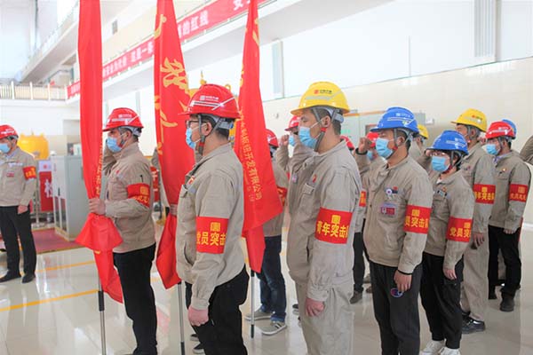 活動(dòng)中,該公司黨委委員、紀(jì)委書記、工會(huì)主席李強(qiáng)同志宣讀了公司黨委印發(fā)《關(guān)于在1號(hào)機(jī)組A級(jí)檢修工作中充分發(fā)揮黨團(tuán)組織作用的通知》的文件要求。公司黨委書記、執(zhí)行董事、總經(jīng)理薛福林同志為“1號(hào)機(jī)組A級(jí)檢修”黨員突擊隊(duì)、黨員服務(wù)隊(duì)、青年突擊隊(duì)分別授旗。生產(chǎn)一線黨員代表、青年代表分別圍繞1號(hào)機(jī)組A級(jí)檢修工作實(shí)際作了《黨員承諾》《青年承諾》。公司黨委委員、副總經(jīng)理錢明雄同志帶領(lǐng)廣大黨員在檢修現(xiàn)場(chǎng)面向鮮紅的黨旗重溫了入黨誓詞。
