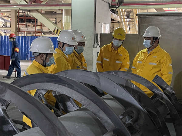 在鍋爐、汽輪機等檢修現(xiàn)場,薛總與各項目負(fù)責(zé)人、檢修人員進行深入交流,了解檢修項目的施工進度、節(jié)點完成情況、現(xiàn)場安全措施執(zhí)行情況等,詳細(xì)了解現(xiàn)場施工重點、難點問題。他要求各項目負(fù)責(zé)人要充分發(fā)揮黨支部、黨員先鋒隊、黨員示范區(qū)的引領(lǐng)作用,在保證安全的前提下,克服疫情帶來的不利影響,嚴(yán)格按照公司的節(jié)點計劃,保質(zhì)保量完成本次檢修工作;要求做好設(shè)備解體發(fā)現(xiàn)問題的分析和研究,制定出有針對性的措施,保證設(shè)備長治久安;對設(shè)備管理專業(yè)人員發(fā)揮工匠精神和主人翁精神,自己制造專用工具、自己發(fā)揮技術(shù)經(jīng)驗、減少外委修理、降低檢修費用的做法給予肯定,要求做好這種精神的傳承和技術(shù)的傳幫帶。