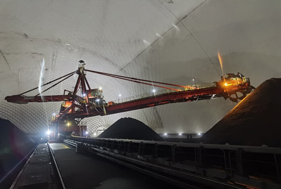 浙能樂(lè)清發(fā)電公司斗輪機(jī)通宵堆料提庫(kù)存。通訊員 孫超 攝