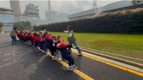 隨著研學活動接近尾聲,南熱電廠的叔叔們與小朋友們展開了一場趣味拔河比賽。比賽現(xiàn)場,氣氛熱烈而歡快,小朋友們喊著稚嫩卻響亮的口號,小臉憋得通紅,奮力往后拉拽。南熱電廠的叔叔們也不敢有絲毫懈怠,他們巧妙地控制著力道,既給予孩子們對抗的體驗,又確保比賽在安全有序的氛圍中進行。老師和其他工作人員則組成了熱情的啦啦隊,加油聲、助威聲此起彼伏,歡聲笑語回蕩在整個場地,大家共同度過了一段美好的童趣時光。