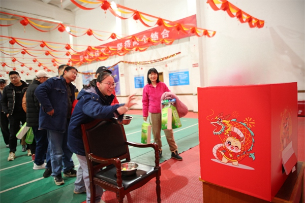 投擲準頭、射箭、投壺以及套圈項目中,參與者們各顯身手,他們瞄準目標,精準投擲,每一次成功都引來觀眾的齊聲喝彩,現(xiàn)場氣氛持續(xù)升溫。蒙眼擊鼓項目考驗的是感知力與方向感,參賽者蒙著眼睛憑借直覺摸索前行,擊鼓成功后喜悅之情溢于言表?;顒蝇F(xiàn)場氣氛熱烈,加油聲,歡笑聲,叫好聲,將活動一次次推向高潮。大家一個接一個“打卡”闖關,沉浸在新春的喜悅之中。