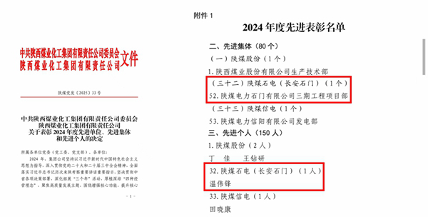 陜煤石電公司榮獲陜煤集團多項榮譽