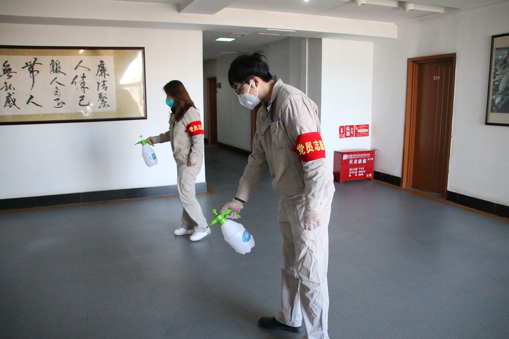 大唐長(zhǎng)春第二熱電有限責(zé)任公司職工為辦公區(qū)域進(jìn)行日常消毒工作