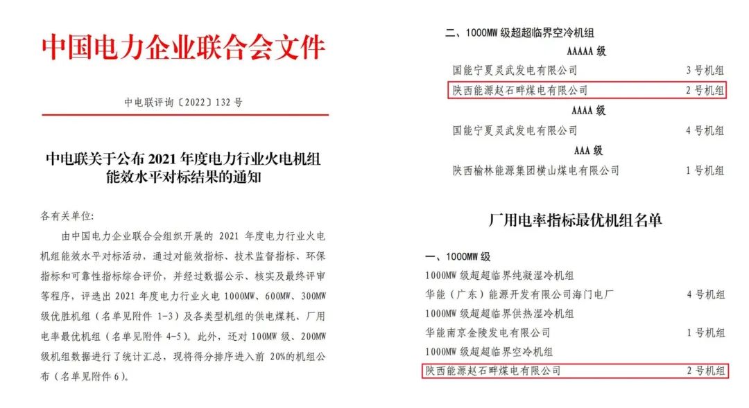 中國電力網(wǎng)訊 6月29日,從中電聯(lián)傳來喜訊,趙石畔煤電公司2號機組榮獲2021年度電力行業(yè)1000MW級超超臨界空冷機組指標對標“AAAAA級優(yōu)勝機組”及“廠用電率指標最優(yōu)機組”。