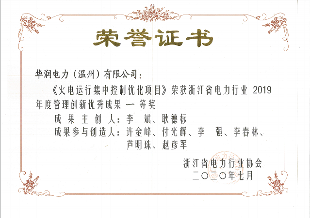 中國電力網(wǎng)訊 近日,由浙江省電力行業(yè)協(xié)會主辦的2019年度管理創(chuàng)新優(yōu)秀成果評審結(jié)果揭曉,華潤溫州電廠《火電運(yùn)行集中控制優(yōu)化項目》從200余項創(chuàng)新成果中脫穎而出,榮膺一等獎。