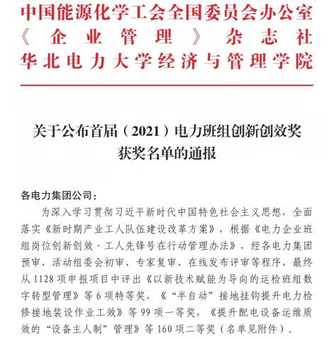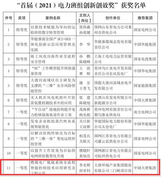中國電力網(wǎng)訊 日前,由大唐環(huán)境特許經(jīng)營分公司申報的“燃煤電廠脫硫系統(tǒng)全流程智能控制技術(shù)應(yīng)用研究及工程示范”項目在中國能源化學(xué)工會全國委員會舉辦的“首屆(2021)電力班組創(chuàng)新創(chuàng)效獎”評選活動中榮獲一等獎。