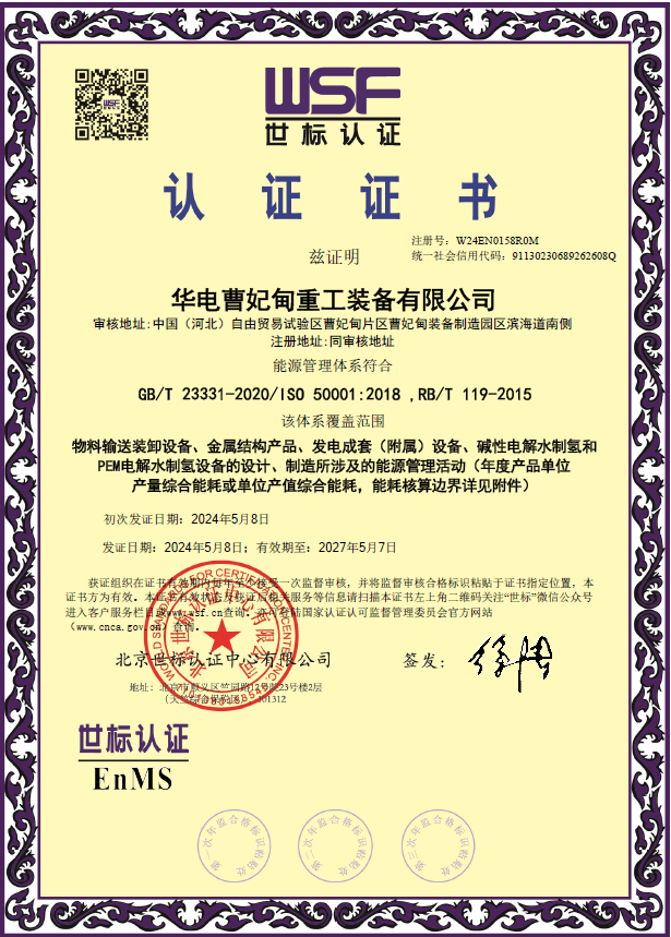曹妃甸重工從基礎(chǔ)設(shè)施的環(huán)保升級(jí)、管理體系的綠色轉(zhuǎn)型、能源資源的高效利用、產(chǎn)品設(shè)計(jì)的綠色創(chuàng)新以及環(huán)境排放的嚴(yán)格管控等多個(gè)維度入手,對(duì)生產(chǎn)運(yùn)營進(jìn)行了全面梳理和優(yōu)化,并首次獲得“能源管理體系認(rèn)證”證書,為順利通過省級(jí)“綠色工廠”認(rèn)定提供了有力支持。在技術(shù)創(chuàng)新方面,曹妃甸重工致力于開發(fā)氫能電解槽等前沿能源項(xiàng)目,進(jìn)一步推動(dòng)能源結(jié)構(gòu)的優(yōu)化工作。