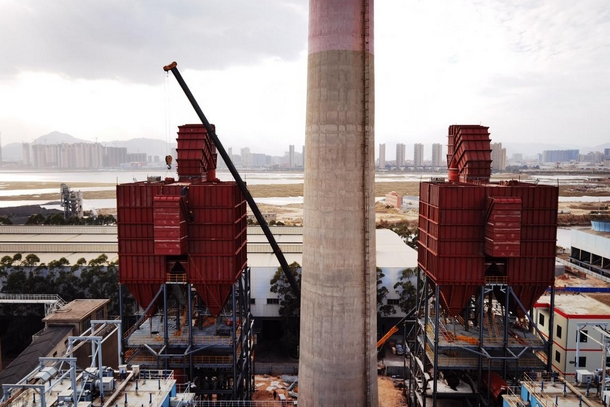 中國電力網(wǎng)訊 11月16日,福建晉江熱電公司鍋爐脫硫除塵改造項(xiàng)目完成封頂關(guān)鍵節(jié)點(diǎn),脫硫塔與布袋除塵器形成貫通。
