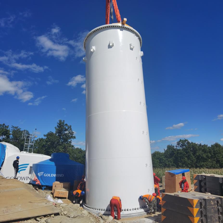 中國電力網(wǎng)訊 9月1日12時59分,隨著下端直徑4.86米,上端直徑4.85米,長12米,重87.3噸的底段風(fēng)機塔筒順利固定就位,標(biāo)志著大唐黑龍江發(fā)電有限公司黑河孫吳風(fēng)電平價上網(wǎng)項目正式進入風(fēng)機吊裝階段。