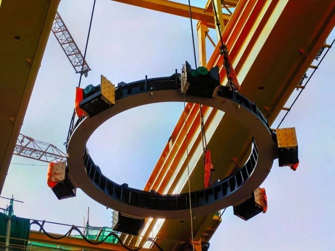 2023年2月6日11:28分,華能海南昌江核電3號機(jī)組壓力容器支承環(huán)順利吊裝就位,3號機(jī)組內(nèi)穹頂?shù)跹b的先決條件收尾再下一城,同時為后續(xù)壓力容器安裝就位筑牢堅(jiān)實(shí)的基礎(chǔ)。