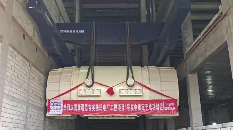 新疆昌吉英格瑪電廠1號(hào)機(jī)組汽機(jī)本體發(fā)電機(jī)定子吊裝就位