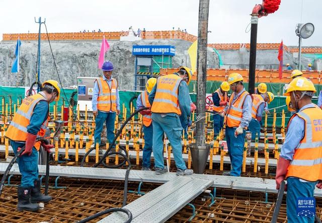 7月28日,施工人員在中廣核寧德核電站5號機(jī)組施工現(xiàn)場澆筑混凝土。新華社發(fā)(中廣核福建寧德核電有限公司供圖)