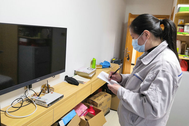 圖為綜合辦公室值班人員正在排查消防隱患