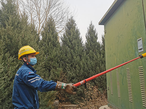 團員青年對外引電源開關(guān)進行驗電