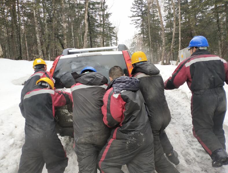 見(jiàn)此情形,大家拿出鐵鍬沿著車輪行駛的方向?qū)⒎e雪清理干凈,幾經(jīng)周折,車終于從泥濘中開(kāi)了出來(lái)。