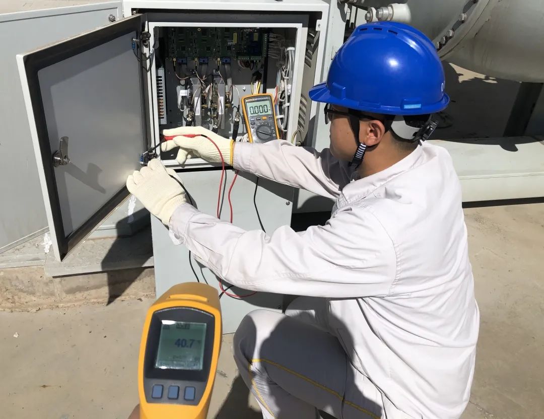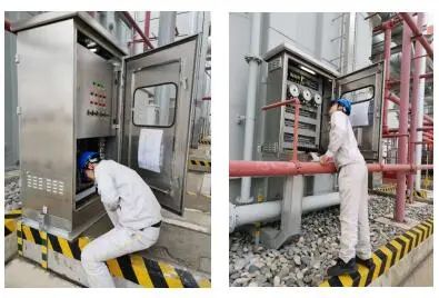 你的每一次低頭檢查,你的每一次仰頭觀察,都是這個(gè)夏天最美的風(fēng)景。迎峰度夏,陜投集團(tuán)趙石畔煤電設(shè)備部電氣自動(dòng)化中心人員在檢查室外端子箱、設(shè)備工作環(huán)境、設(shè)備工作狀態(tài)、溫度是否合適、是否受潮情況、防風(fēng)防雨措施是否到位等。(陶鳳娟)