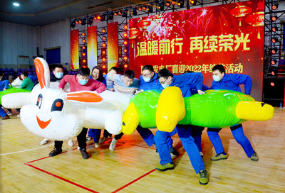 在趣味活動(dòng)環(huán)節(jié)中,踩氣球、搶水瓶、安全行車、龜兔爭霸等比賽精彩紛呈,現(xiàn)場職工全員參與互動(dòng),你爭我奪,你追我趕,大家在一片歡樂、祥和的氛圍中再踏新征程。