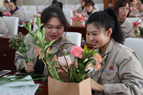 一件件融合了女職工們豐富想象力的美麗插花作品展現(xiàn)在了大家的面前,女職工們幸福的笑容與花朵相互交融。最后,女職工紛紛與自己的花籃合影留念,記錄下這幸福美好的時(shí)刻。