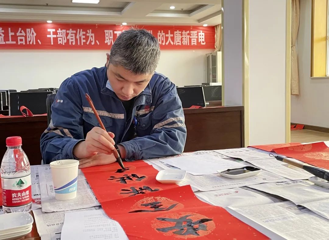 他寫的多幅與安全生產(chǎn)相關(guān)的春聯(lián)作品被張貼在公司辦公樓門口和生產(chǎn)廠區(qū)各區(qū)域大門上,成為“門面擔(dān)當(dāng)”,助力營造生產(chǎn)現(xiàn)場安全文化氛圍的同時(shí),也獲得電氣班“神筆馬良”的美稱。